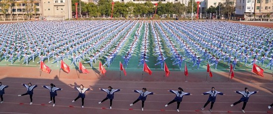 随着《运动员进行曲》的雄壮乐曲,2300余名孩子迈着矫健的步伐,翩翩起舞,拉开了课间大活动的惟幕。12月22日,湖南省双峰县城北学校开展内容丰富、形式多样的阳光大课间体育活动,以实际行动落实国家“双减”政策,扎实推进“五项管理”,每天锻炼一小时,增强学生健康体魄一个缩影。