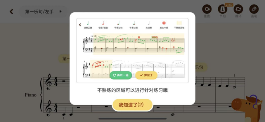 “尤其是对不熟练的区域进行针对练习,还能左右手单独训练,这个功能非常好,之前我家孩子的左手一直有卡顿,针对性练习两周之后,就和右手基本一样熟练了。”