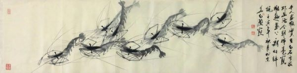 在白洁老师众多的作品中,可以看到他对艺术的追求和对生活的挚爱,艺术成为他一生的梦想和追求,为了这个梦想而孜孜不倦的努力和耕耘着。他的作品中有浓郁的生活气息,宛如清风拂过,又如明月般透彻。他的《虾趣图》线条流畅,简洁明快,构图巧妙,虽然只有两三只虾,仿佛能看到了虾在水中嘻戏玩闹斗趣,活灵活现,生动活泼,具有独特的视觉感受和艺术魅力。画是死的,能够把死的东西画活了,这需要深厚的艺术功力和造诣,更需要对生活有更深的体验,才能把自己的感受画出来,否则是达不到这样的境界的。我们常说艺无止境,所谓的艺术创作其实就是一个探索的过程,只有在不停的探索中才能达到艺术的最高境界。