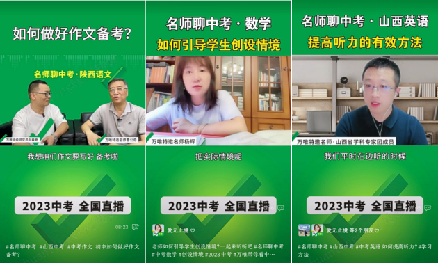 据统计,万唯2023全国中考考场外直播观看人次达213万,直播衍生原创短视频观看人次超2亿、点赞数超153万。