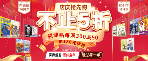 店庆火热进行中,全场杂志 5 折起,还享每满300减50阅读津贴,大额神券免费抢,更有专区满200减100上不封顶,续订享最低价,组合更优惠、订阅有礼等超值优惠活动,多重福利等你来拿!错过等一年,赶紧去看看吧~