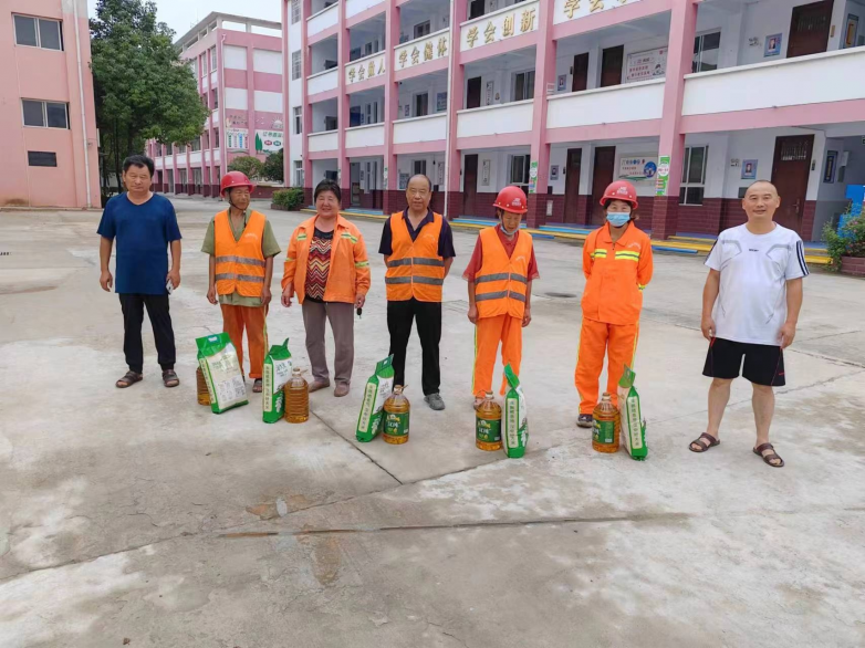 此次活动中,学校特意准备了大米一袋和食用油一桶作为慰问品,由学校总务主任黎照辉亲自带队,对学校周边及社区内的保洁员进行了走访慰问。