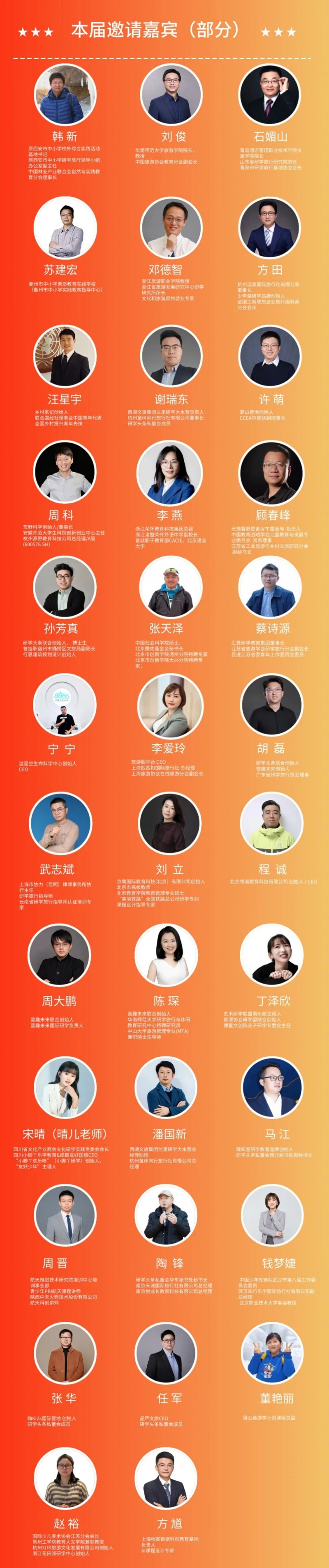 2、 教育信息化企业;教育机构负责人;研学旅行相关研究学者和专家;