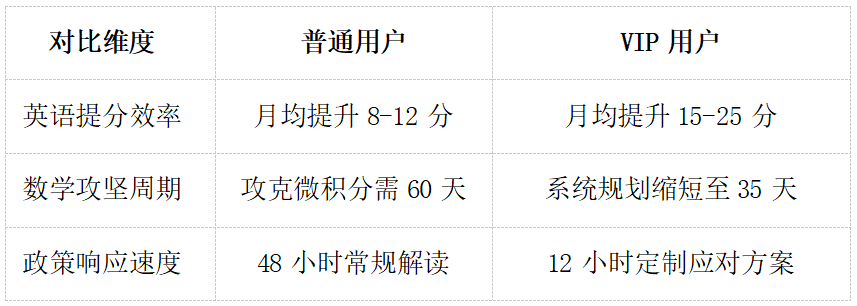 面对专升本日益激烈的竞争,考试蚁推出专升本VIP会员服务体系,针对英语与数学两大核心科目设计专属权益,为专科生提供从基础强化到冲刺提分的全流程支持。该服务上线一年内已助力超3万名考生成功升本,其独家权益体系成为破局关键。