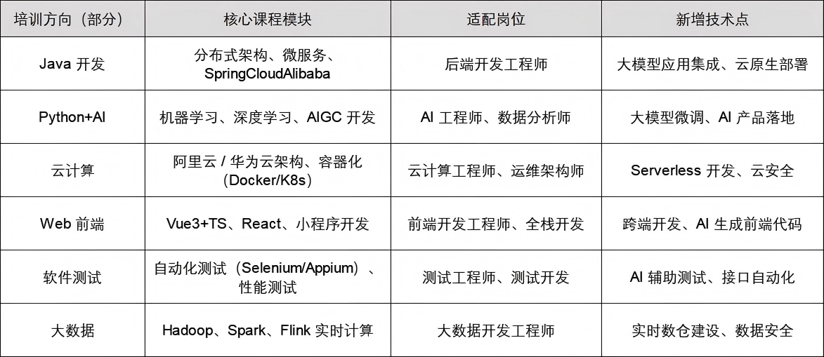 新达内教育针对 IT 行业核心岗位,打造 “基础 - 进阶 - 高阶” 阶梯式课程,覆盖 多个热门领域,专注AI数智人才培养,每季度根据企业需求迭代内容,确保学员学的就是企业要的: