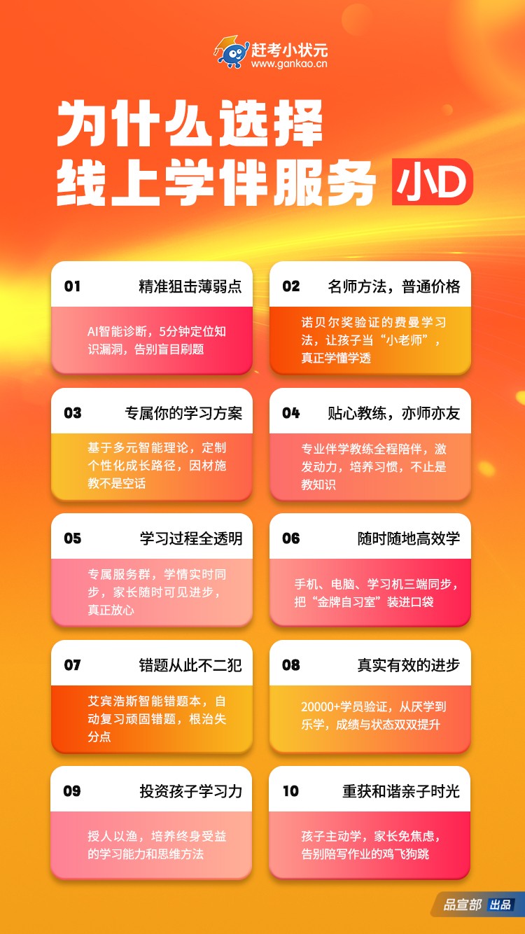 赶考小状元:科学理论与双师融合的差异化破局相较于其他平台,赶考小状元的“线上学伴服务小D”在技术应用之外,更注重教育理论与学习心理的深度融合。其独特价值体现在三重维度: