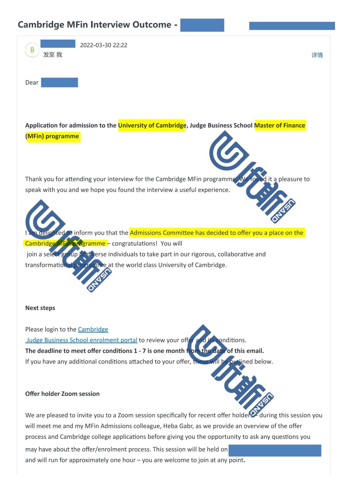 热烈庆祝H同学斩获剑桥金融硕士(Master of Finance)录取一枚,优斯美研继续保持逢年G5大满贯的荣光。虽然该项目要求申请者拥有至少两年相关工作经验,实际上录取学生的平均工作年限是4年左右,详情请参考优斯美研访谈录:【剑桥大学(University of Cambridge)】金融硕士专访。