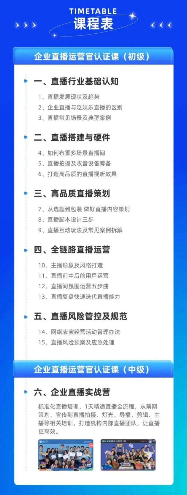 这就回到了该认证项目的初衷——帮助企业打造高品质直播的精英团队,构建直播体系。