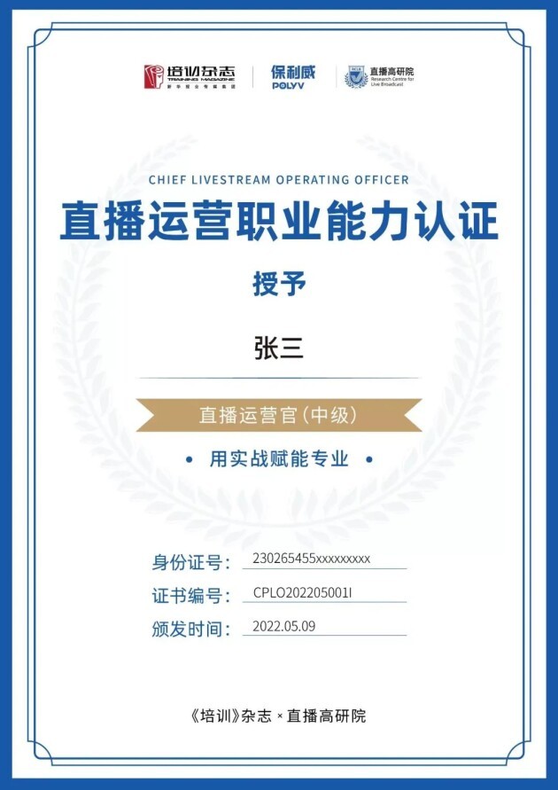 “直播运营官认证项目”是《培训》杂志与保利威直播高研院联手精心设计的能力认证项目,专门为中国企业直播领域相关从业者打造。