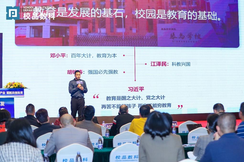 校园产业发展研究专家、校品数科董事长王昌品先生代表主办方致辞时提出:百年大计,教育为本,教育是国家发展的基石,校园是教育发展的基础,校园是教书育人的地方,学校的教育理念、文化建设、环境设施等影响着学生的思想言行、精神素养及价值观,教育兴则国家兴,教育强则国家强。校园产业是一个庞大的市场,校品数科作为校园产业行业的领先企业,要承担社会责任,为校园产业的数字化、平台化、系统化、标准化发展贡献出力量,推动校园产业的健康发展。