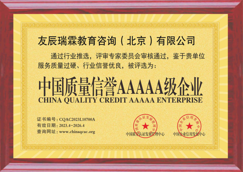 经过长久的教学经验积累,以及专业的师资队伍,友辰瑞霖与2023年通过行业推选,评审专家委员会等多方鉴定评选为:中国质量信誉5A级企业。
