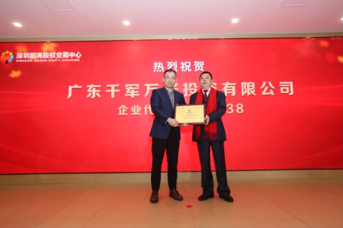 2020年6月30日下午,广东千军万酱投资有限公司正式在深圳市前海股权交易中心挂牌成功,企业股权代码:681538。此次成功登录深圳市前海股权交易中心并挂牌,千军万酱集团董事长黄诚坤表示,这是千军万酱发展中迈上了又一个新的台阶,也是千军万酱发展史上的重要里程碑,对于千军万酱的发展,有着战略性意义。