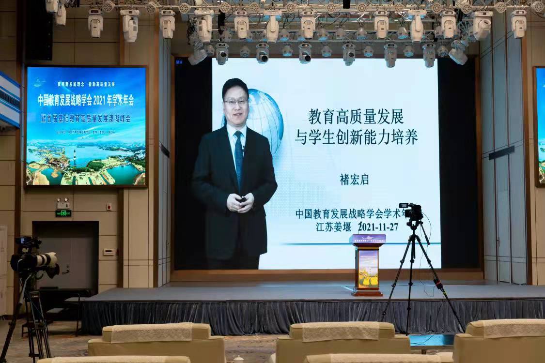 人民艺术网本网讯:11月27日,中国教育发展战略学会2021年学术年会暨首届基础教育高质量发展溱湖峰会以线上模式召开,与会领导、嘉宾借助数字平台以“云端会议”赋能高质量基础教育。会议以党的十九届六中全会的胜利召开为契机,结合六中全会通过的党的百年奋斗重大成就和历史经验决议的学习要求,坚持以习近平新时代中国特色社会主义思想为指引,以“贯彻新发展理念,推动高质量发展”为主题,紧扣当前我国教育改革发展的重大战略问题设置专题论坛。