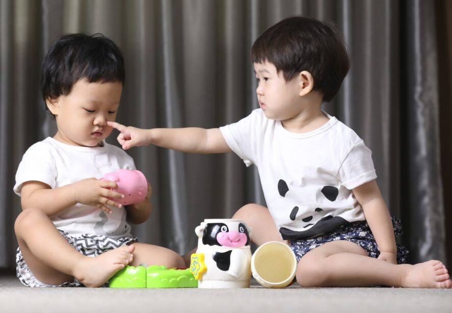 孩子在两岁出现自我意识,慢慢的先占有我的物质,然后慢慢的用语言说不,来剥离我和我之外的不同,逐渐的区分出来了我、你、他。