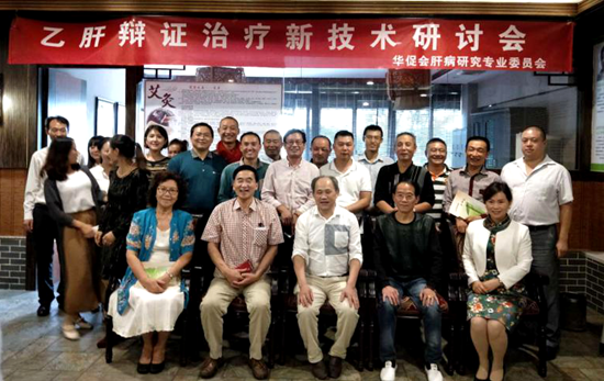 廖长清2017年在成都举办乙肝辨证洽有研讨会,与成都中医大刘言正等专家学者合影。