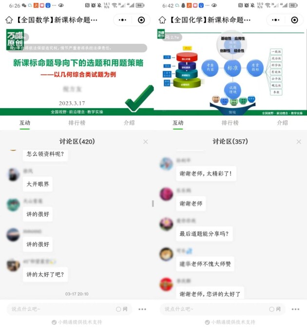 3月17日,万唯特邀全国中考命题前沿省市专家,以新课标导向为切入点,聚焦“好题”在二轮复习的使用场景,通过对中考命题评估和全国考改趋势的分析、好题选用标准的阐述等,策划中考七科(不含地理、生物学)公益备考直播课。内容针对性、实用性强,吸引了超20万人次老师观看,对老师的教学和备考有非常积极的指导作用。