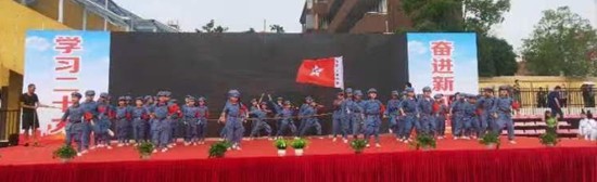 文艺演出在慷慨激昂的《我的中国心》的旋律中园满落幕,台下全体师生挥舞党旗,表达全校师生爱党爱国爱家乡的真挚情怀。