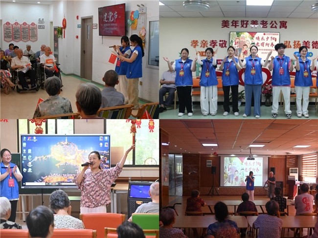 走访期间,实践队员为老人们带来多场融合专业特色与红色基因的文艺演出。激昂的合唱《没有共产党就没有新中国》、《歌唱祖国》及《强军战歌》,唤起全场共鸣;队员周欣雅带来的笛子独奏,旋律悠扬,抚慰人心,现场掌声不断。通过文化艺术表演,实践队将温暖与关怀传递给每一位老人,丰富其精神文化生活。