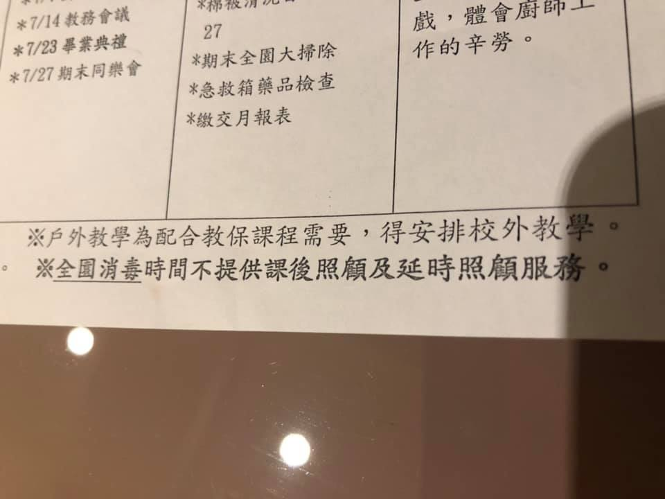 ▲家长表示幼儿园的行事历上仅标示消毒时无课托。图:爆怨公社