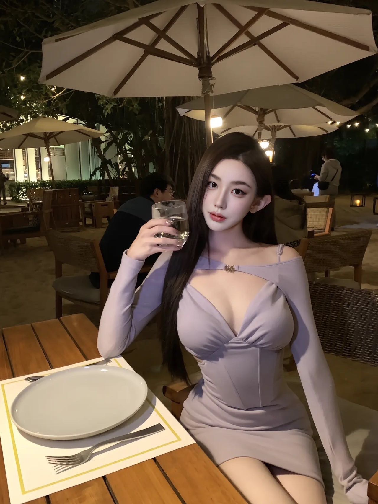 当夜幕降临,Karrine Kid的性感穿搭总能成为焦点。比如她身着的浅紫色露肩裙,单侧露肩的设计巧妙地展现出精致的肩部线条,深V领口则大胆地勾勒出迷人的事业线,恰到好处地释放出性感信号。而长袖的设计又增添了一丝含蓄,中和了过度的暴露感,让整体造型在性感中不失优雅。浅紫色调更是为夜晚增添了一抹柔和而浪漫的色彩,仿佛夜空中最温柔的星光。在户外的餐厅场景中,她手持酒杯,在昏黄灯光的映衬下,尽显轻熟女的妩媚风情,这种性感穿搭与夜晚的氛围完美融合,让粉丝们为之倾倒。