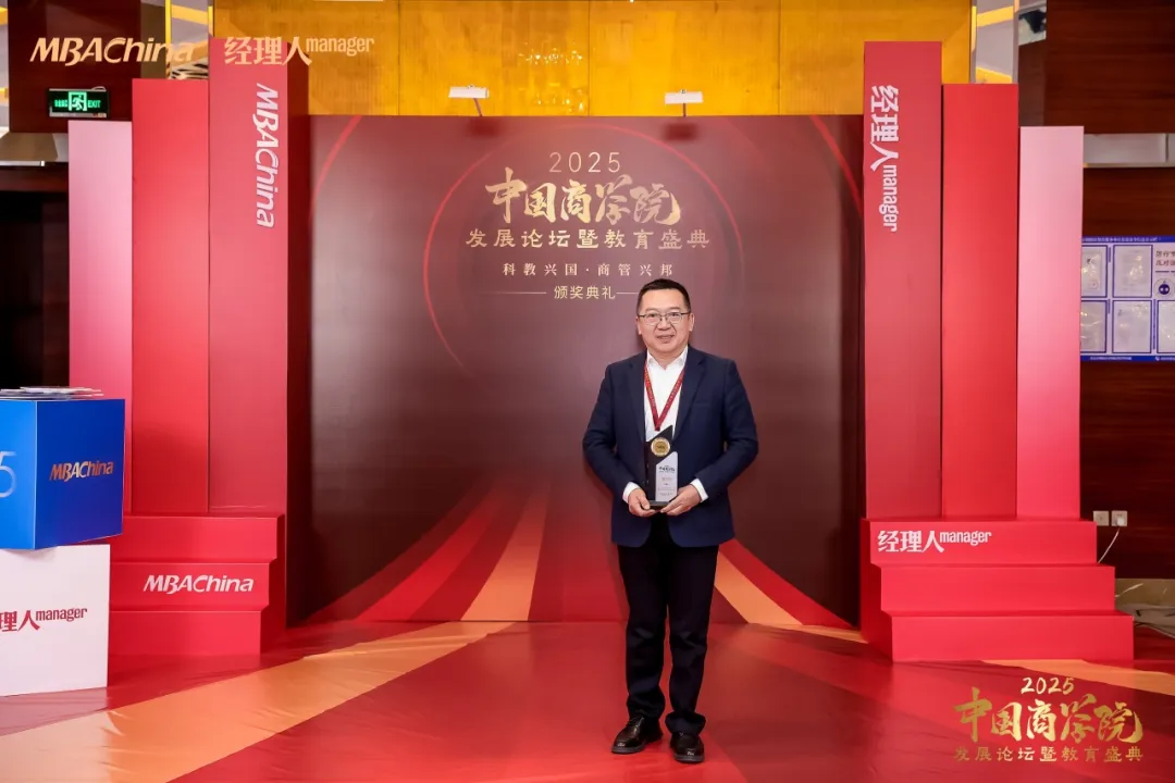 商学院行业导师潘锦功校友、熊焰校友因在有效连接学界与业界、有力推动实践教学、并为学生提供关键职业发展指引方面的突出成就,荣获“2025年度中国商学院杰出业界导师”称号。