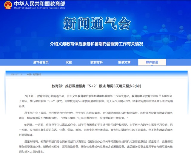 近日教育部就发布通知,秋季开学开始,将在义务教育阶段全面推行“5+2”这一新模式,即学校每周5天都要开展课后服务,每天至少开展2小时,结束时间要与当地正常下班时间相衔接。